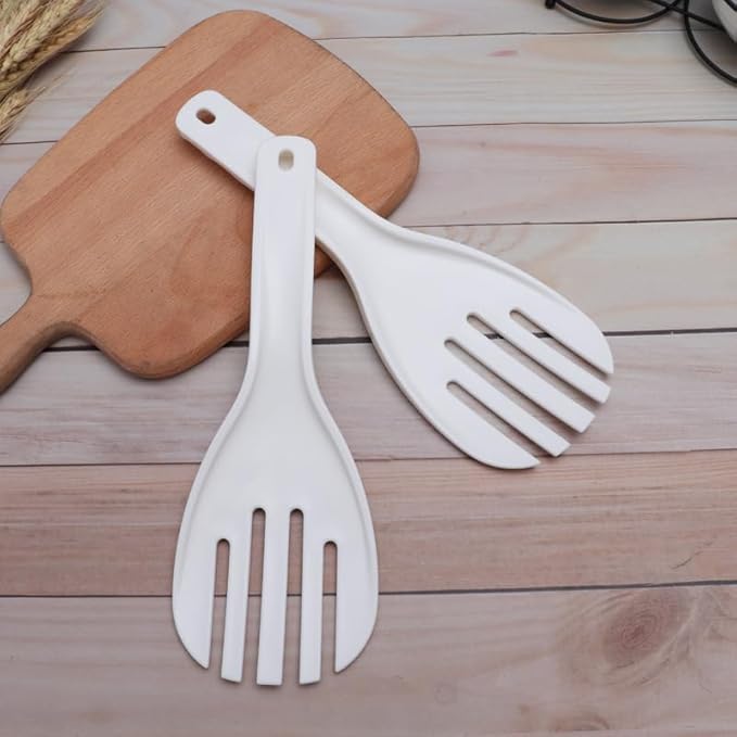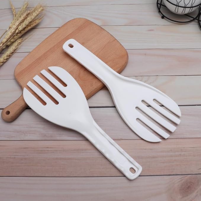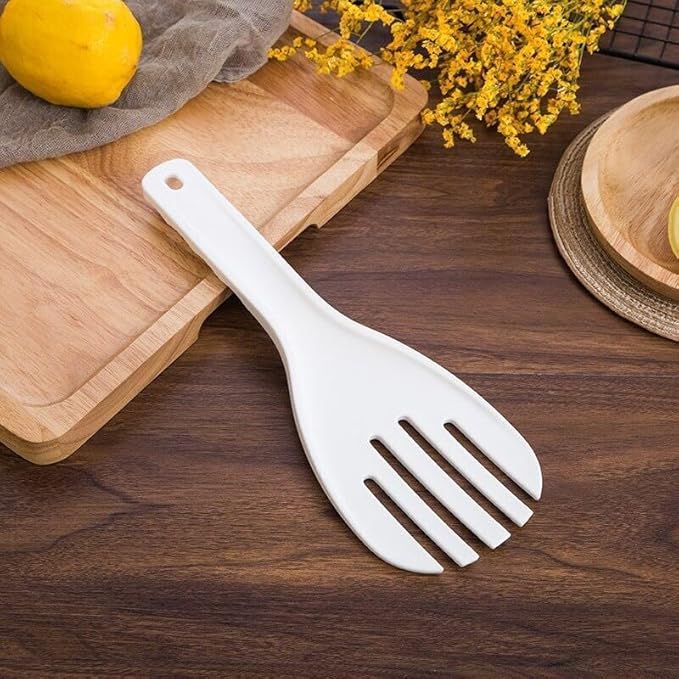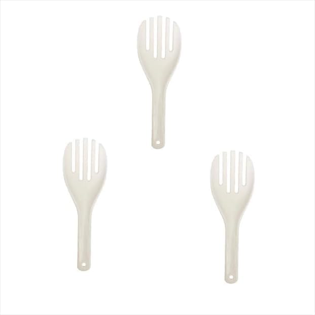 Lot de 3 grandes spatules à riz en plastique blanc - Cuillères de service en forme de fourchette pour riz et pommes de terre (27 cm de long)