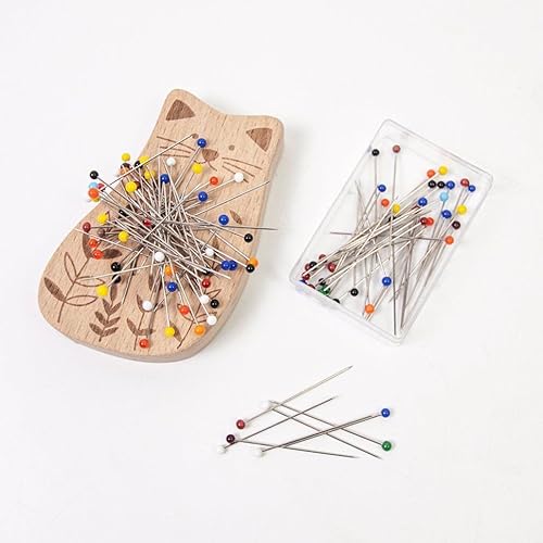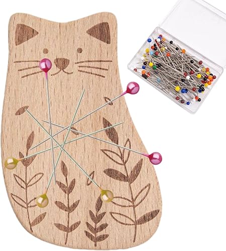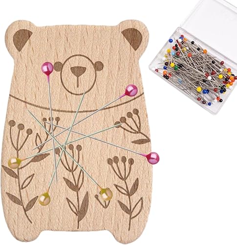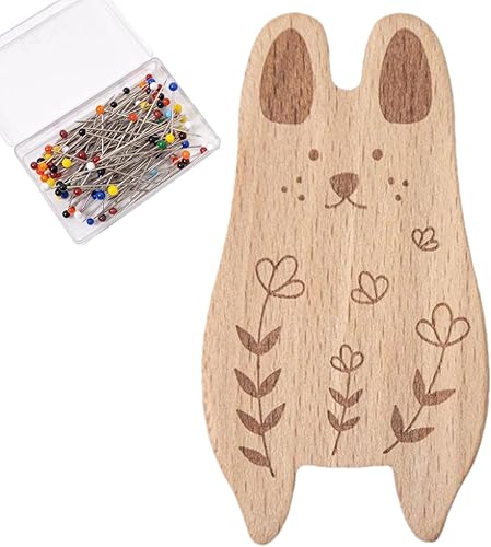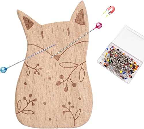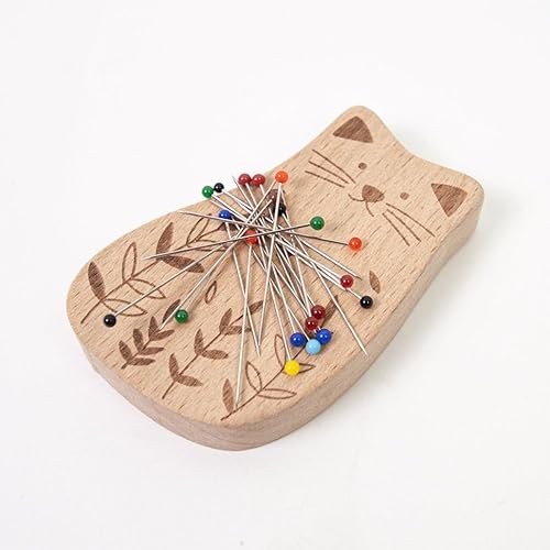 Aimant en Bois Porte-Epingles Magnétique, Aimant Gravé d'un Animal De Dessin Animé Porte Aiguille Aimantée, avec 100* Aiguilles À Coudre (Couleurs)