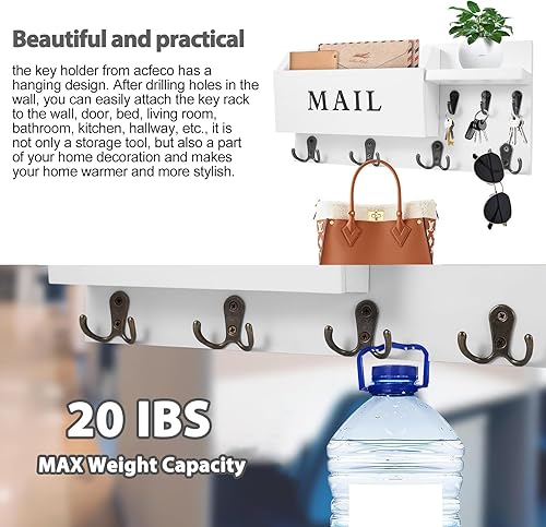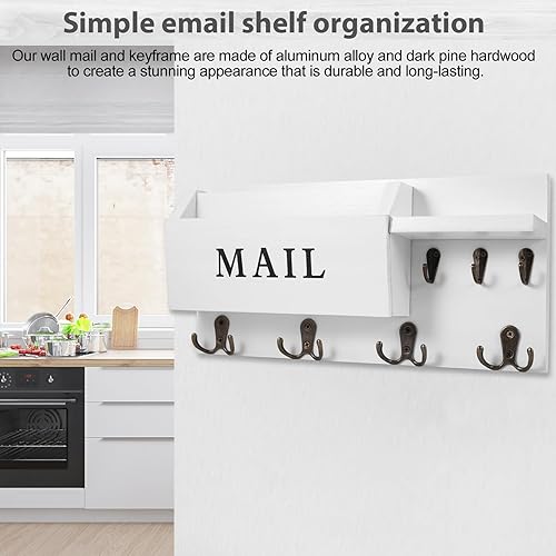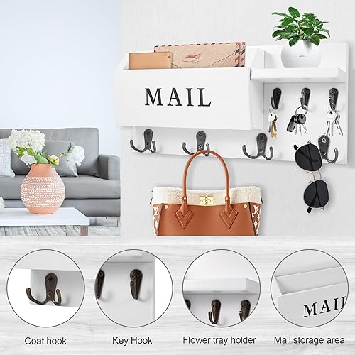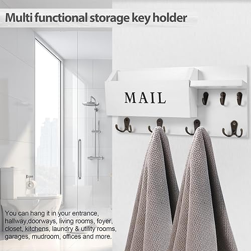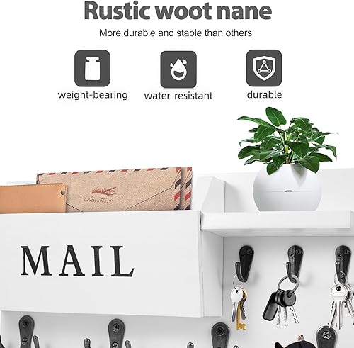 BTBHIHO Porte Clef Mural, Porte-Clés avec Étagères, Home Décoration Boîte à Clés Vintage Et Porte-Lettres Mural, Porte-courriers avec 7 Crochets pour Salon, Cuisine, Bureau, Chambre (Blanc)