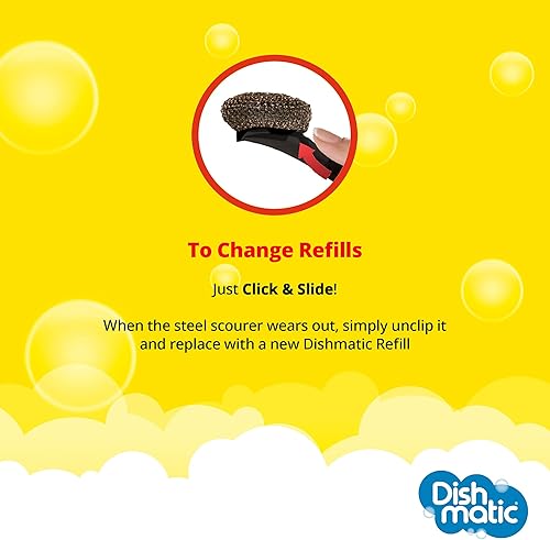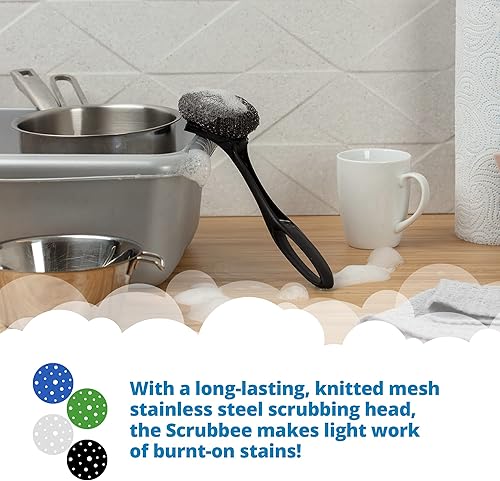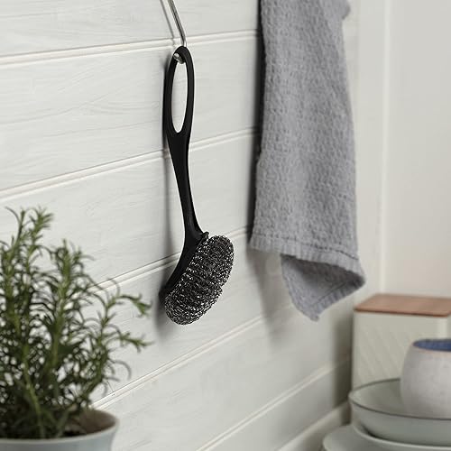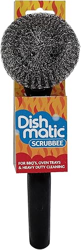 Dishmatic Scrubbee Brosse à vaisselle en acier inoxydable pour barbecue, grill, four – Poignée ergonomique