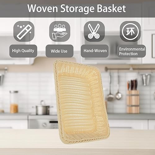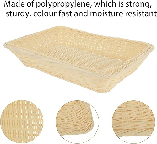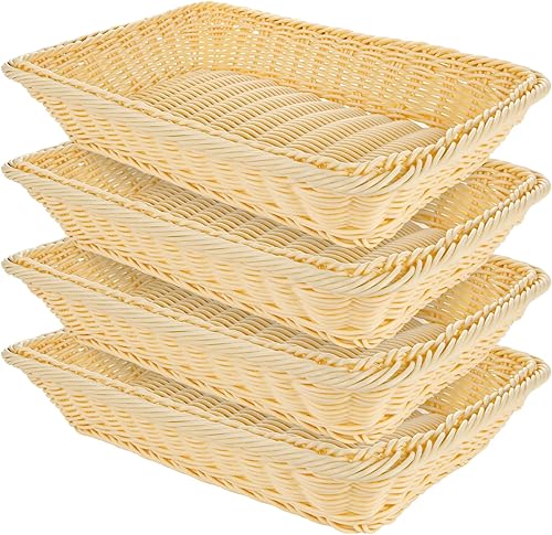 4 Pièces Corbeille a Pain en Poly Osier 35 x 25 x 7cm Panier a Pain,rectangulaires en osier pain fruits légumes paniers, panier de service alimentaire, Corbeille a Fruit Osier pour restaurant boutique