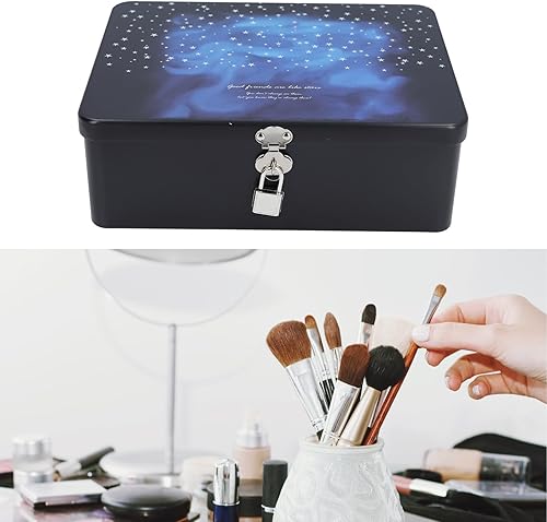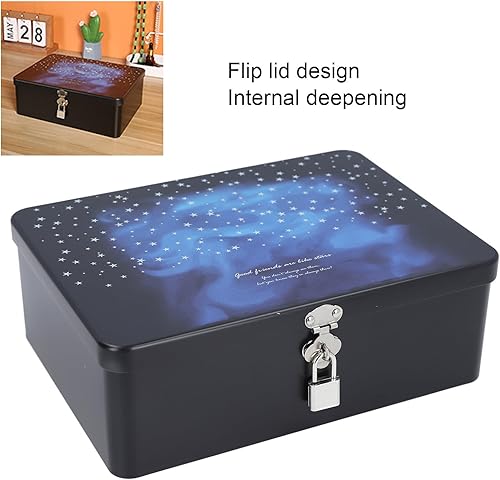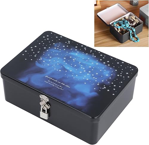 Boîte au trésor en fer blanc, boîte de rangement en fer blanc avec cadenas, boîte de verrouillage en métal avec clé et serrure, boîte de verrouillage décorative pour colliers