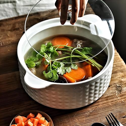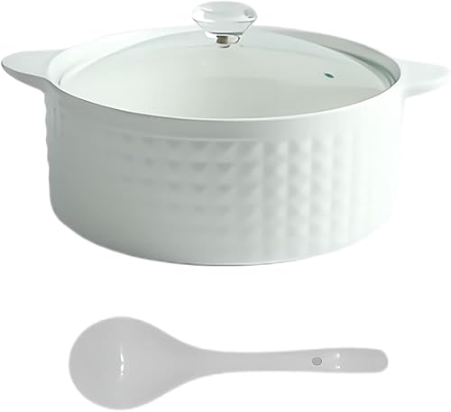 Soupière de service en céramique avec couvercle en verre et louche en céramique de 2L, grands bols de service en porcelaine pour la maison, la cuisine, le restaurant, la décoration blanche, moderne