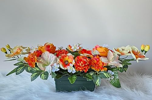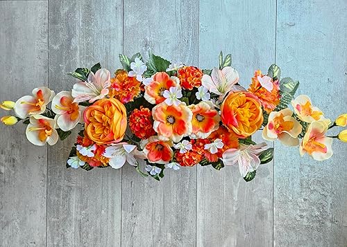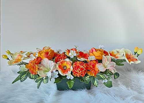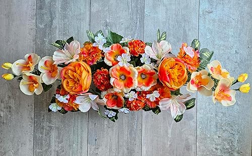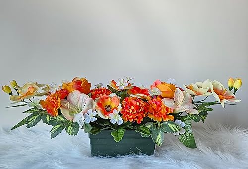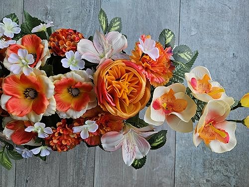 Roselynexpress Composition de Fleurs Artificielles Lesté Ciment pour Une Parfaite Tenue à L' extérieur. Réalisé par nos Soins, Fleurs de Qualité.