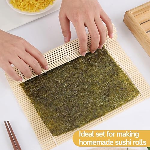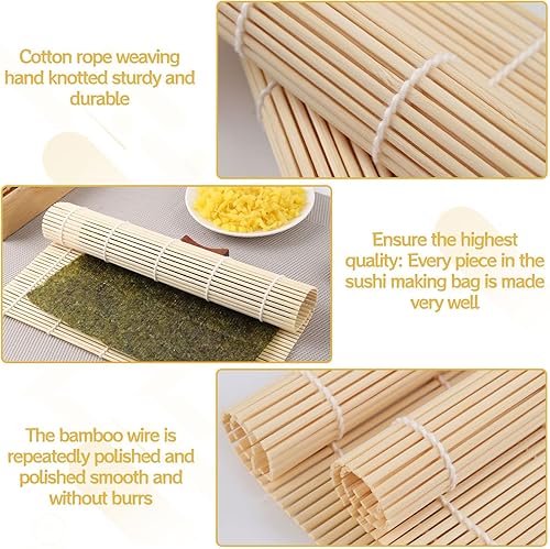 Tapis de Rouleau de Bambou, Natte Sushi 5 Pièce, Natte Sushi, Tapis Sushi en Bambou Naturel, Kit de Démarrage pour Débutants Sushi Set Sushi Maker, pour les Amateurs de Sushi