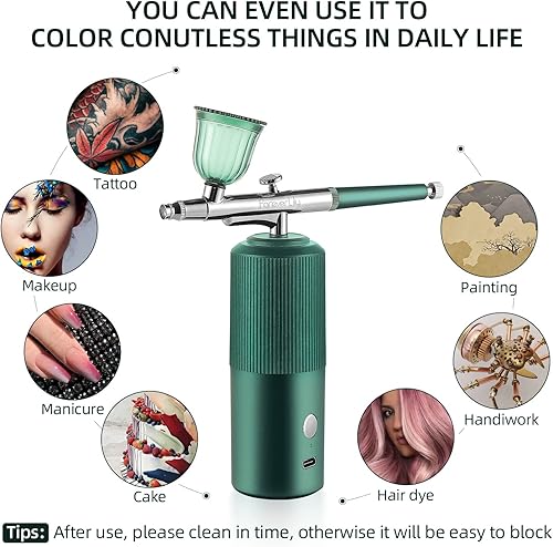 Kit aérographe avec compresseur, aérographe portable sans fil rechargeable (vert),Multi-Fonctions Airbrush Set Pour Ongles, Peinture De Modèle, Gâteau
