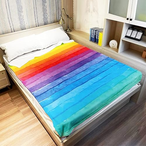 Violetpos 150 x 200 cm - En flanelle polaire douce - Multicolore - Peinture à l'encre - Arc-en-ciel