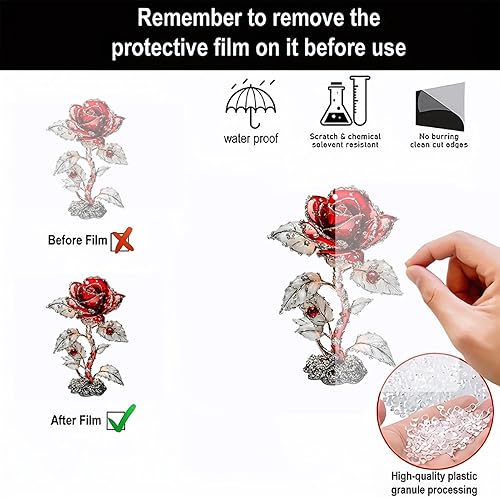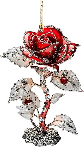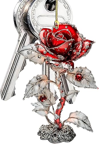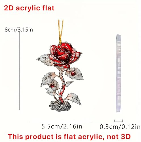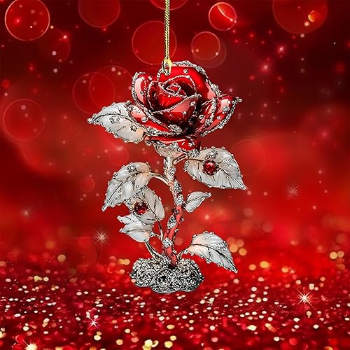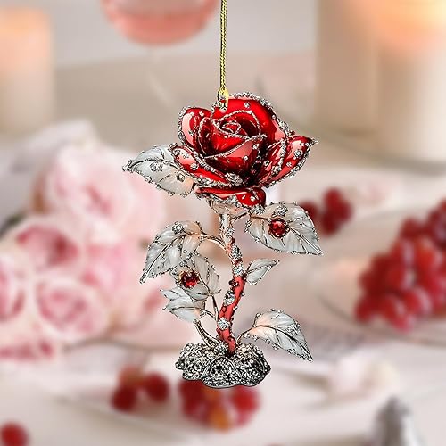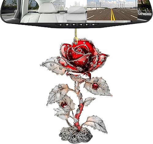 XIAOXIAOYU Pendentif de rétroviseur de voiture en acrylique - Ornement avec roses rouges pour la Saint-Valentin - Accessoire de rétroviseur avec texture délicate pour fenêtres, chambres d'hôtel