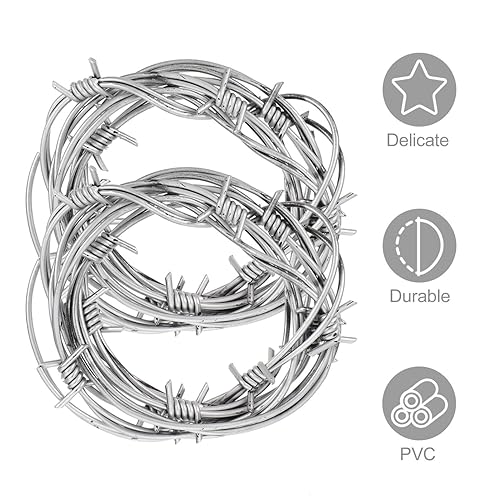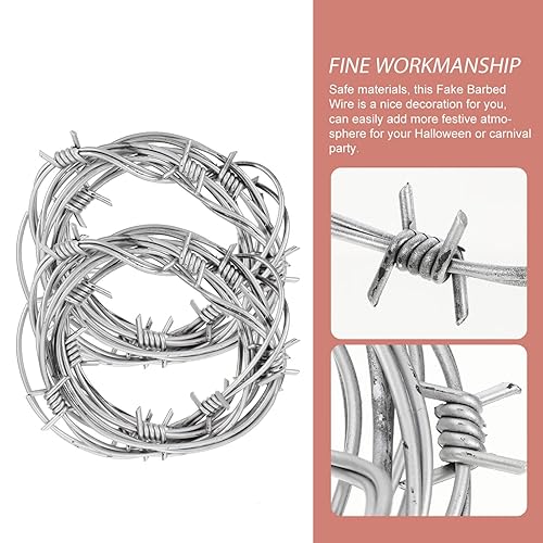 SAFIGLE Lot de 2 faux fils barbelés argentés pour décoration de maison hantée, jouets pour enfants - 240 cm