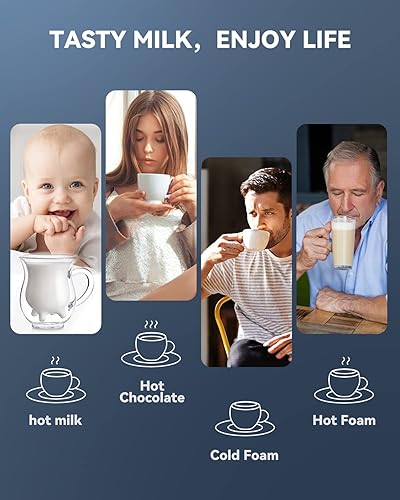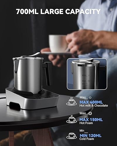 Wamife Mousseur à Lait Électrique 550W, Mousseur à Lait Automatique 400ML avec 2 en1 Agitateur Design, Mousseur Lait du Lave-Vaisselle de Mousse de Lait Froide et Chaude, Lait Chaud, Chocolat Chaud