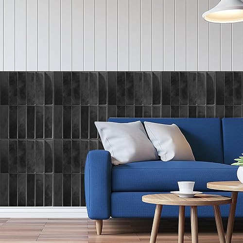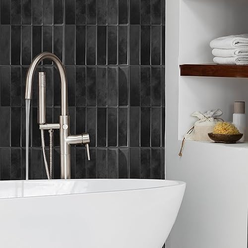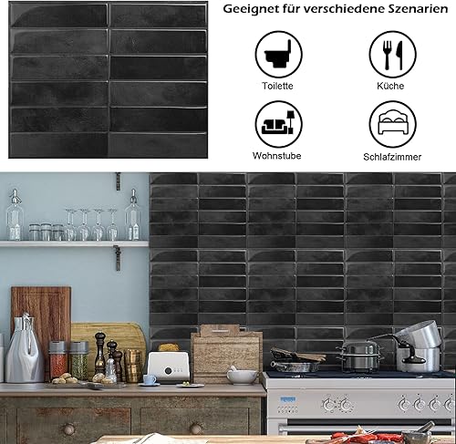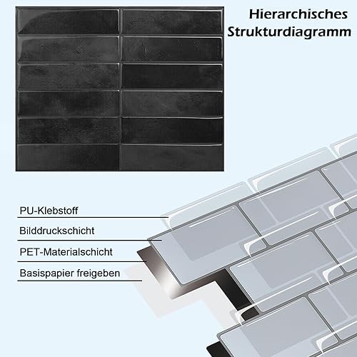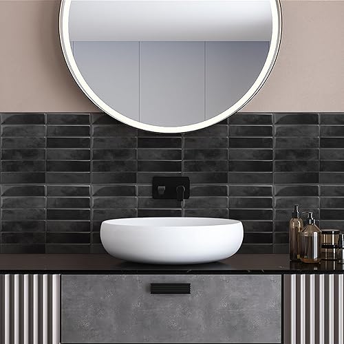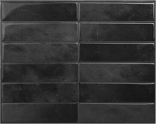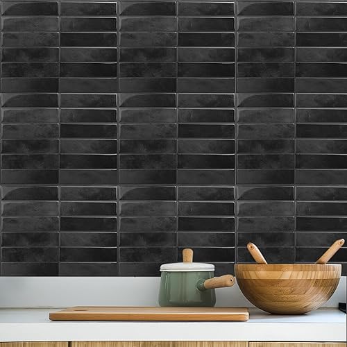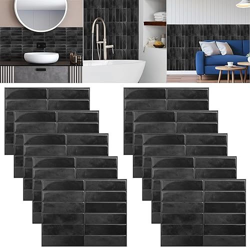 Peel and Stick Lot de 10 feuilles d'autocollants pour carrelage - 29 cm x 23 cm - 3D - Amovibles et adhésifs - Pour cuisine, salle de bain, décoration murale - Noir
