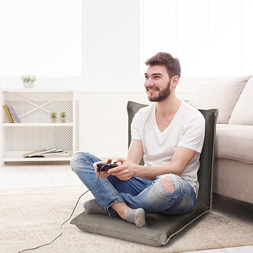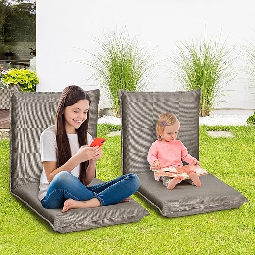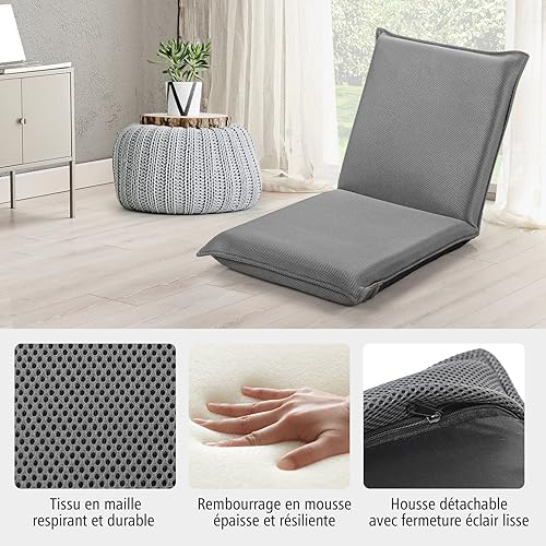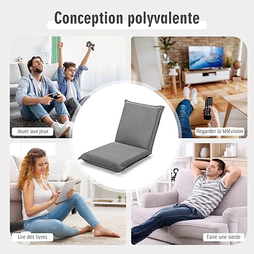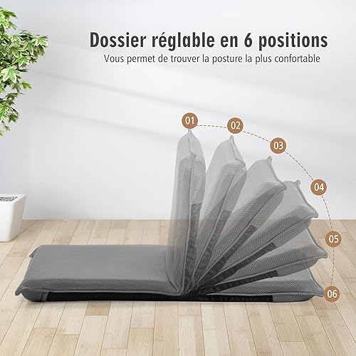 GOPLUS Chaise de Sol Pliante avec 6 Positions Réglables, Fauteuil Convertible Paresseux Inclinable Rembourré d’Éponge, Chaise de Plancher pour Maison, Bureau, 98×44×7CM (Gris)