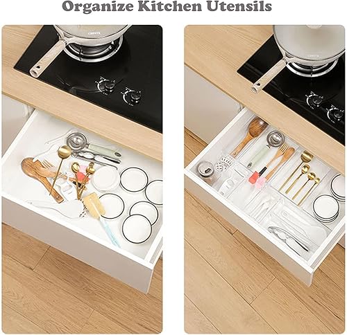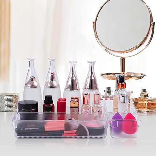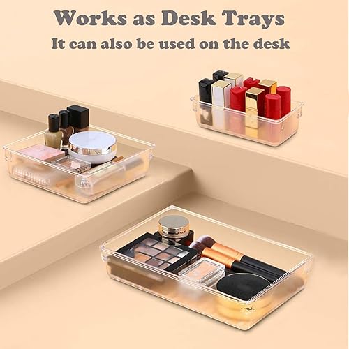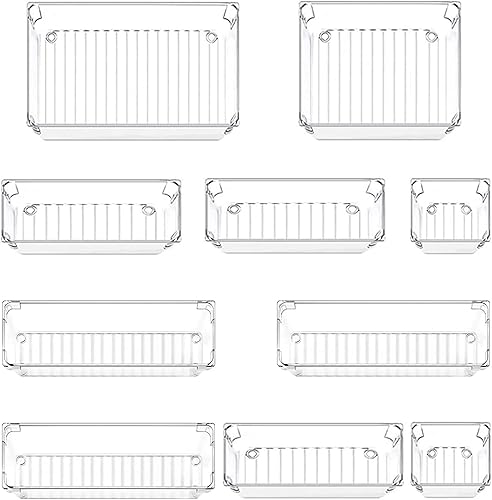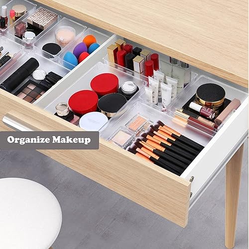 Evance Organisateur Maquillage Lot de 10, Plateaux de Rangement Plastique Boîte Stockage, Organiseurs de Tiroir pour Cosmétiques, Bureau, Cuisine (Transparent)