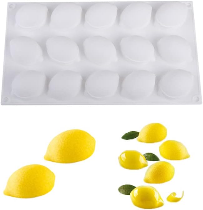Goldyida Moule à 15 trous - Moule à citron - Moule à dessert - Moule en silicone pour la cuisson - Moule 3D - Moule à bougie pour savon fait maison, gâteaux, pâtisseries, biscuits