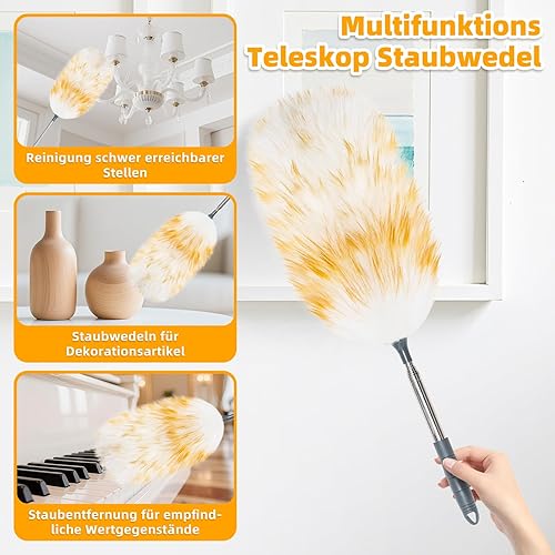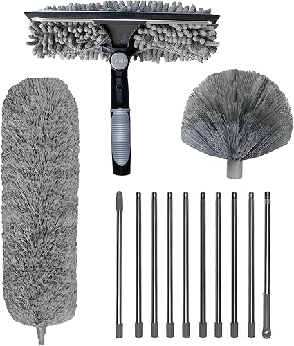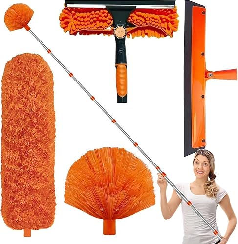 Époussette Télescopique, Perche Nettoyage Toiture, Plumeau pour Plafond Haut Plumeau en Microfibre À Toile D'araignée, Kit De Dépoussiérage Haute Portée De De 6m avec Perche D'extension De 4.25m