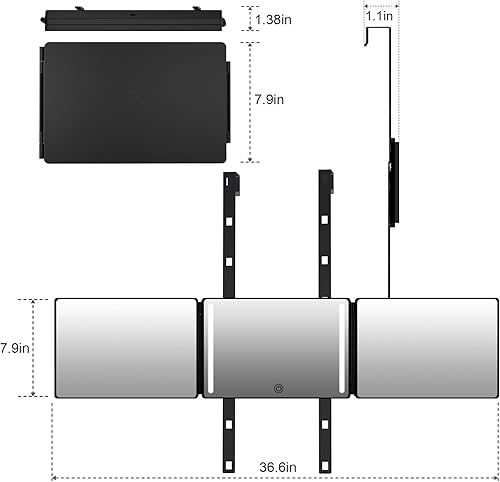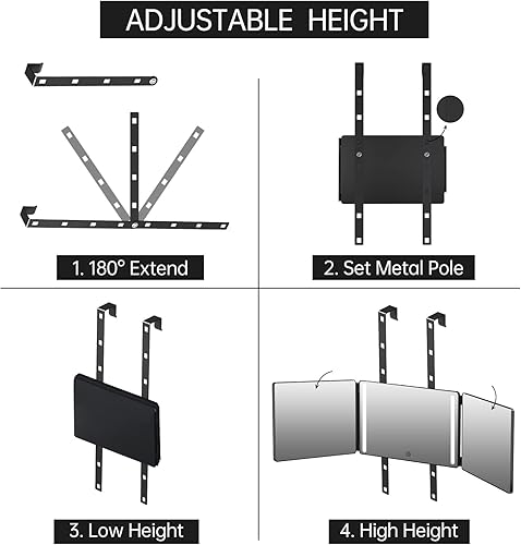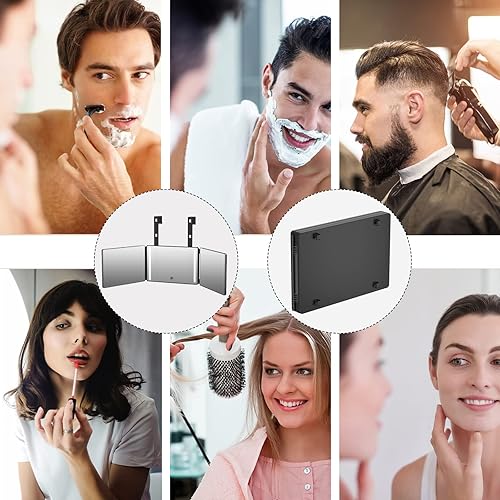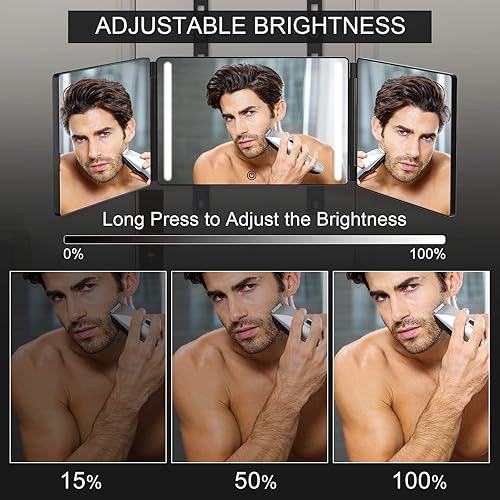 FASCINATE Miroir 360 degrés avec lumière, miroir cosmétique 3 voies avec supports, hauteur réglable, pour maquillage, coiffure, coupe, poignées, miroir de douche, miroir de rasage, miroir à suspendre