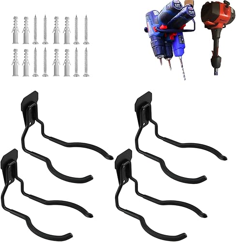 Juformin Lot de 2 crochets pour outils électriques, crochets muraux de garage, support de désherbeur, crochet utilitaire pour organiseurs d'outils de garage et rangement