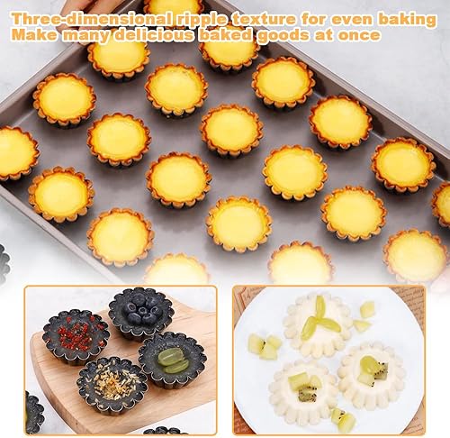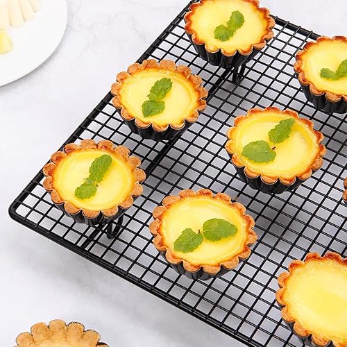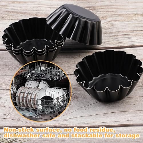 Lot de 12 Petits Moules à Tartelettes,6.35 cm/2.5 in Moules à Tarte aux Oeufs,Réutilisables Moules à Tartelettes en Acier au Carbone,Antiadhésif Moule à Muffin pour Tartes Puddings Muffins (Noir)