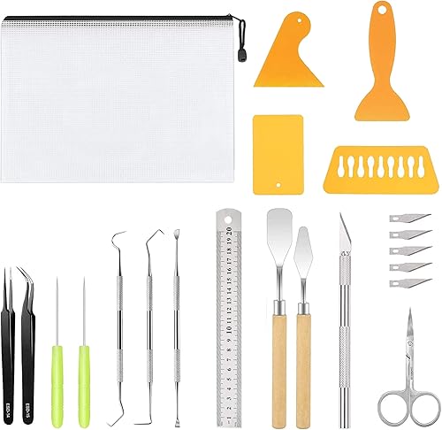 N|A Allazone 22 PCS Outils de Bricolage en Vinyle, Outils de Désherbage en Vinyle, Outils de Ponçage en Acier Inoxydable avec HTV pour Le Bricolage, Camées, Lettrage, Fabrication de Cadeaux de Noël