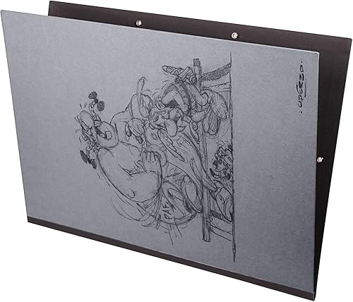 Clairefontaine 813013C - Un Carton à Dessins Fermeture Elastique A3+ 32,5x45 cm pour formats A4 et 24x32cm - motif ''Astérix Crayonnés'' face fond gris / dos fond noir