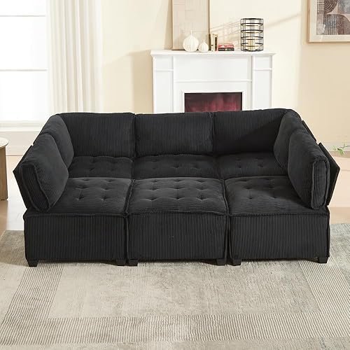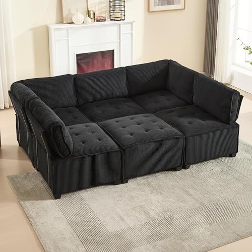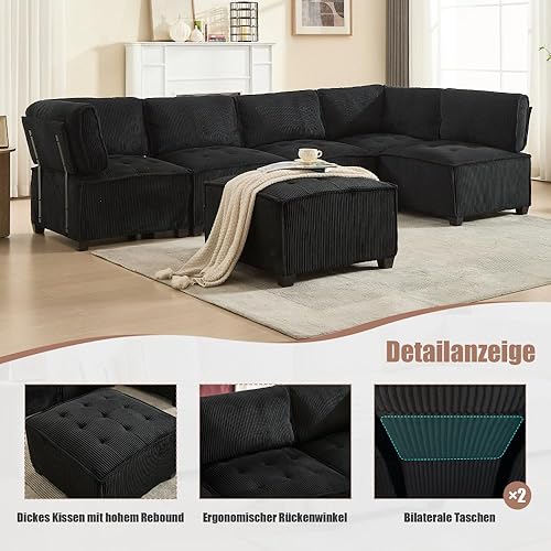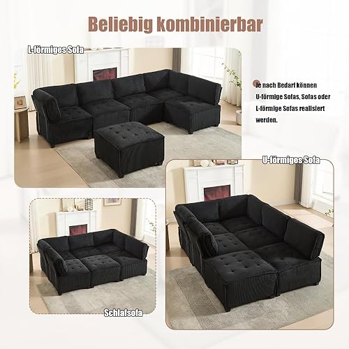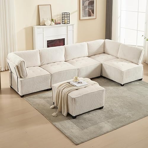 Zubaliya Configuration Flexible en Forme de U/Forme de L/canapé lit, canapé modulable 6 Personnes, Tissu Velours côtelé, Ergonomique, avec Sac de Rangement, Facile à Assembler (Beige)