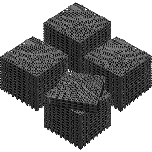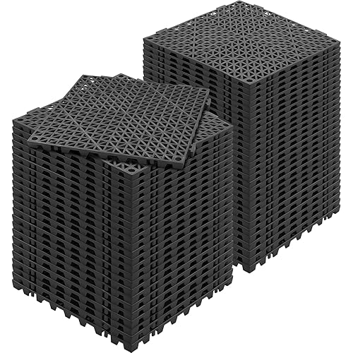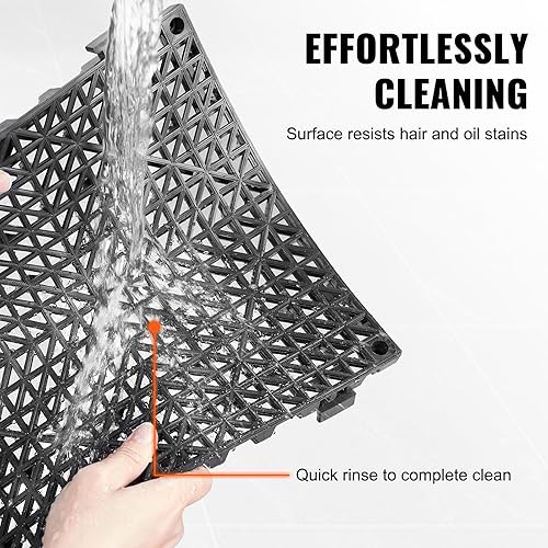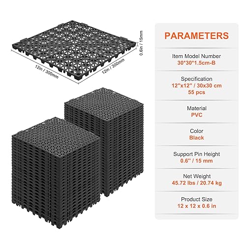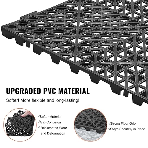 VEVOR Lot de 55 Tapis de Drainage modulaires emboîtables en PVC Souple avec Trous de Drainage antidérapants pour Toilettes, Salle de Bain, Cuisine, Piscine - 30 x 30 cm - Noir