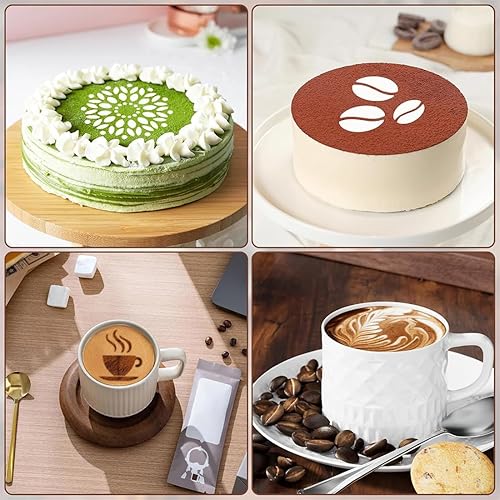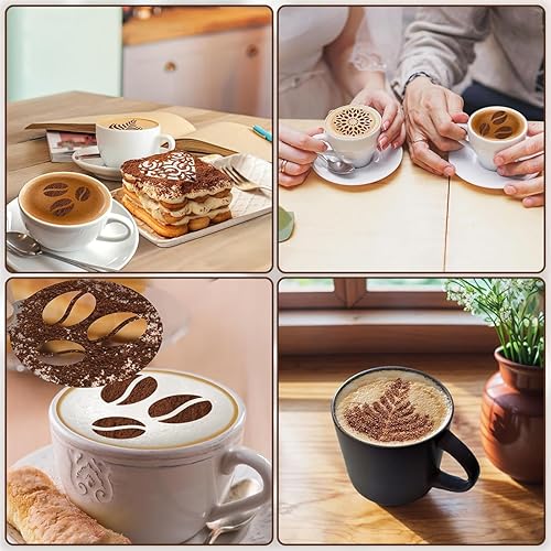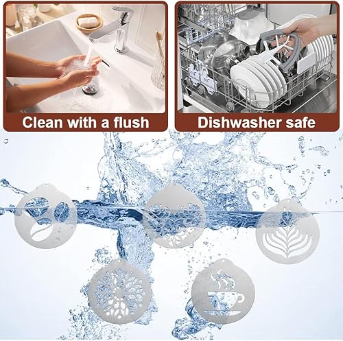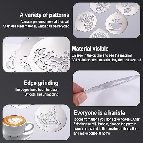 Aililong Lot de 5 pochoirs à café en acier inoxydable - Pochoirs pour cappuccino - Pochoirs de décoration en mousse de lait - Accessoires de café - Parfaits pour les modèles d'art DIY et plus encore