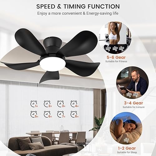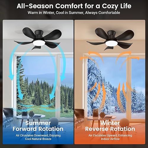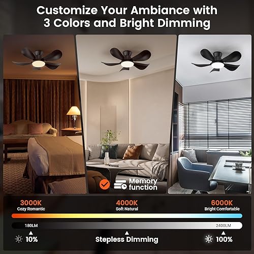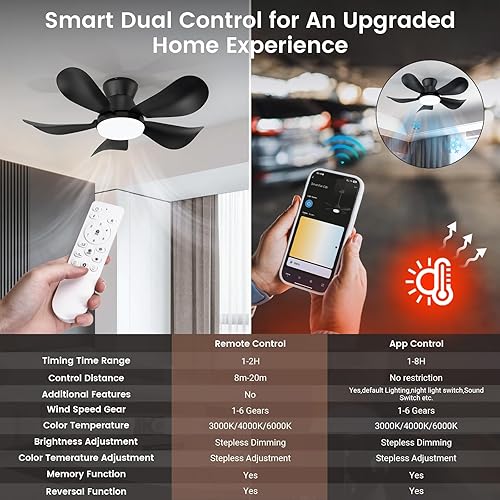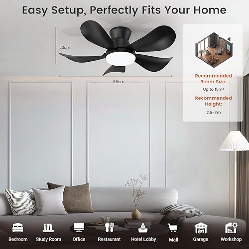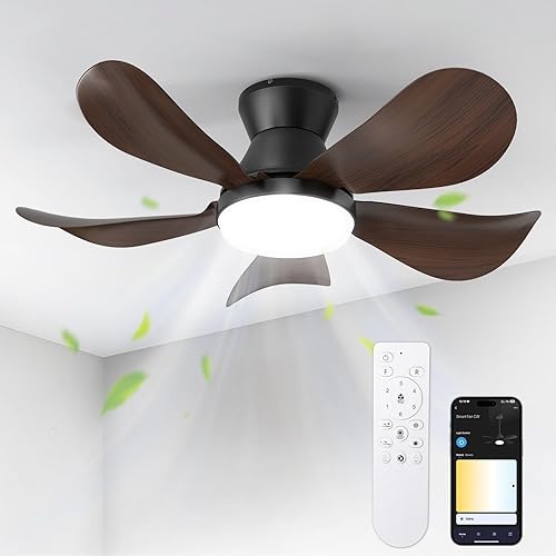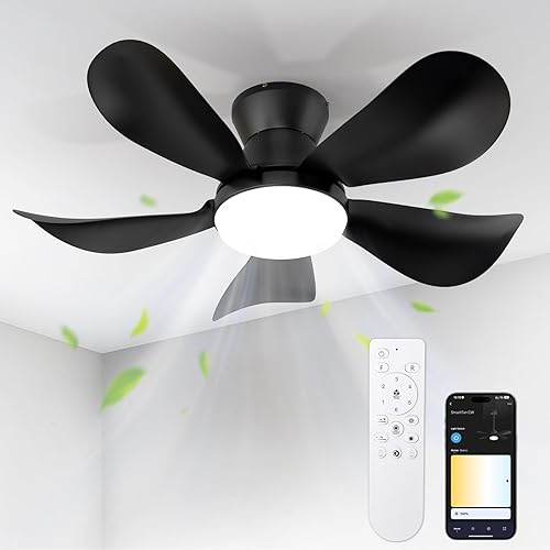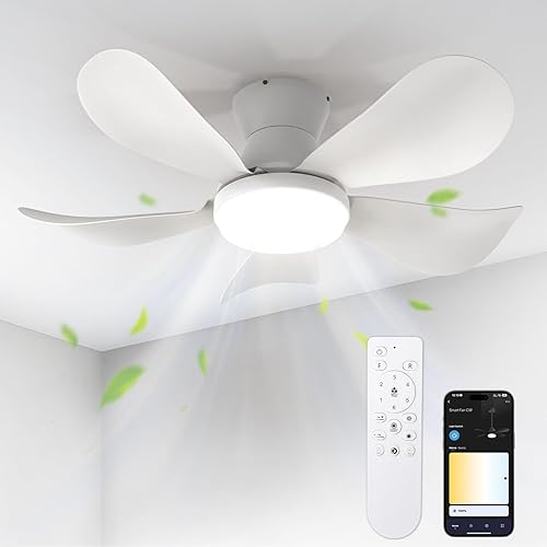 BLITZWILL Ventilateur de Plafond avec Lumière, Ø66cm Ventilateurs de Plafond avec Éclairage LED, Contrôle App&Télécommande, 6 Vitesses, 3 Couleurs Dimmables, 5 Pales, Silencieux, Été-Hiver, Minuterie