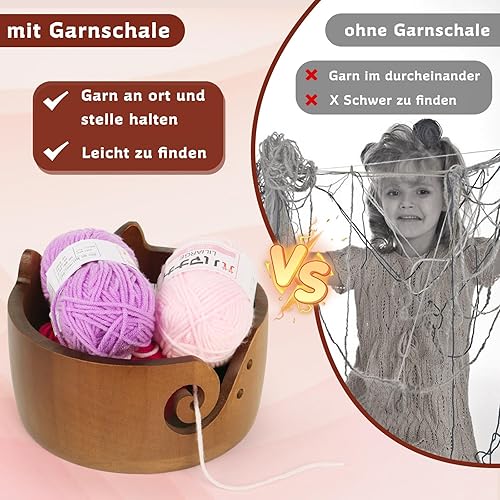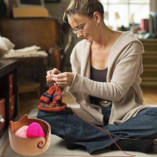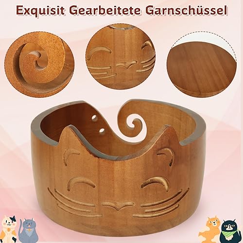 Coopay Bol à laine vintage chat pour laine, 18 x 10 cm, grand bol en bois, léger, grand bol en laine à tricoter, fait à la main, bol en laine pour crochet, bol portable pour projet de tricot et de