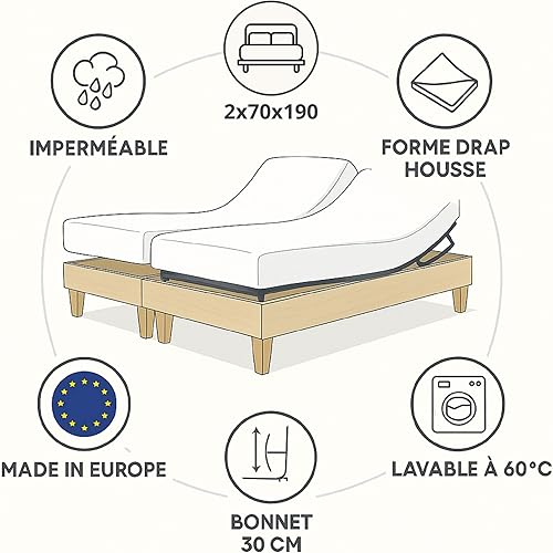 Protège Matelas Imperméable Tête&Pieds Relevables/Protection Matelas Forme Drap Housse 2x80x200pour lit électrique TPR articulé/Protège Matelas spécial lit articulé (2_x_80_x_200)