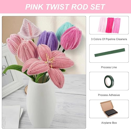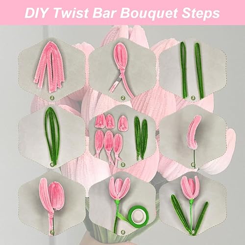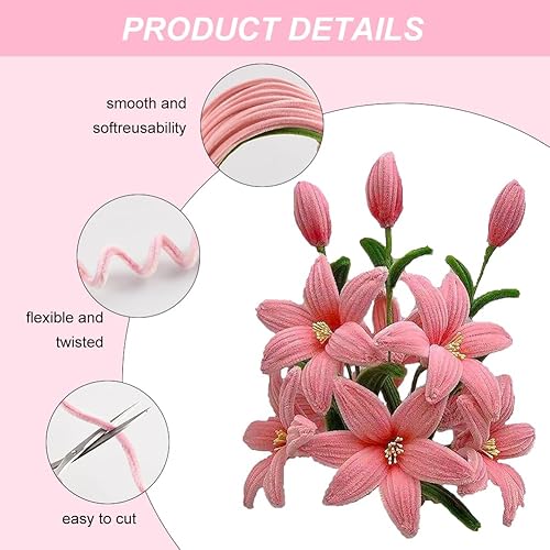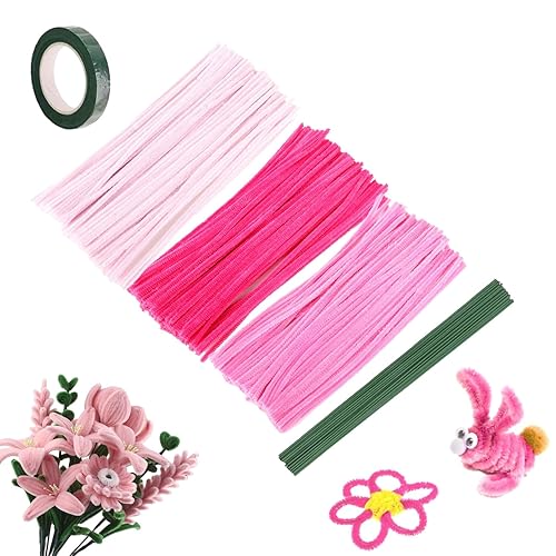300 Pièces Fil Chenille, Kit Bouquet Cure Pipe Chenille, Creative Fil Chenille, Avec 1Ruban Adhésif De Fleuriste Et 10 Tige Fleur, Pour Décorations Et Artisanat Créatif Creatifs,Diy, 30 * 0.6 Cm