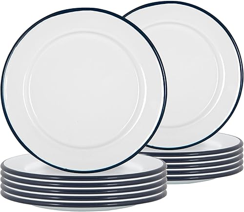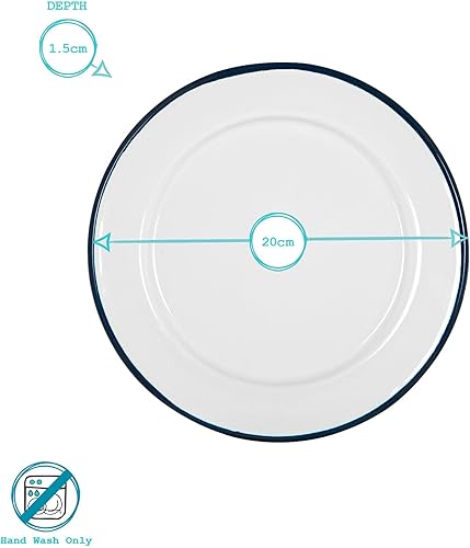 Argon Tableware Plaques de latérale en émail Blanc - Plats de Camping en Plein air en métal - 20cm - Marine - Pack de 12