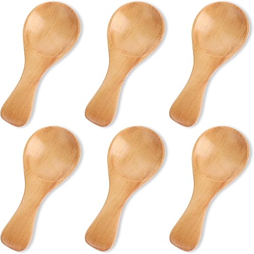 Molain 6 petites cuillères en bois, 8 cm, mini cuillères en bois, pour assaisonnements, sauces, sel, sucre, miel, poivre, café, crème, confiture, moutarde, condiments
