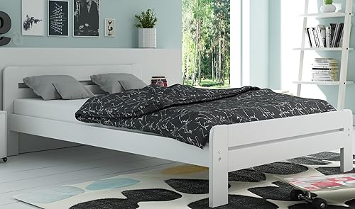 Interbeds Lit Simple/Double - pin Massif-Bois- avec Sommier à Lattes - Cadre de Lit - Assemblage Facile (Blanc, 120x200)