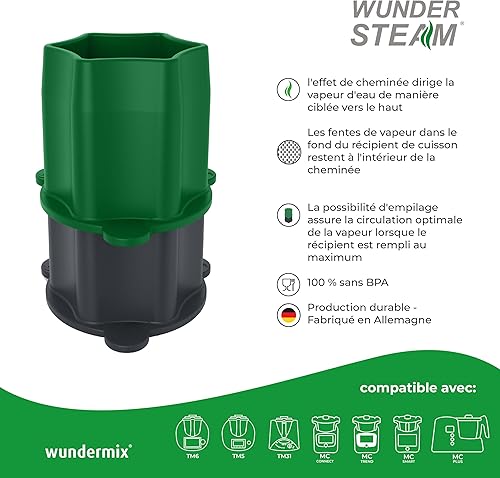 Wundermix - WunderSteam® Cheminée vapeur pour Thermomix & Monsieur Cuisine • Accessoire vapeur pour Varoma • Circulation optimale de la vapeur • Couleur: Vert