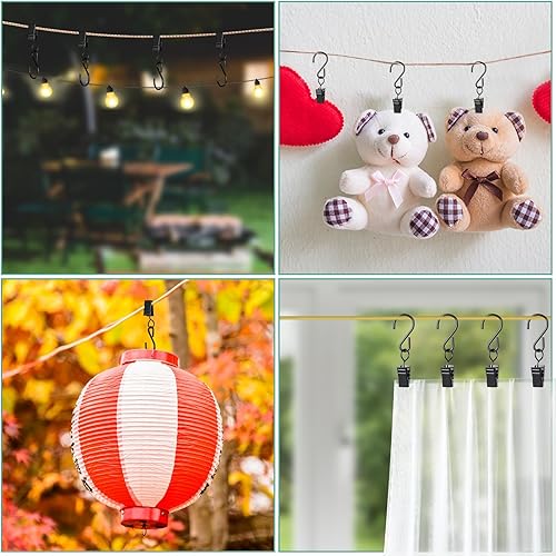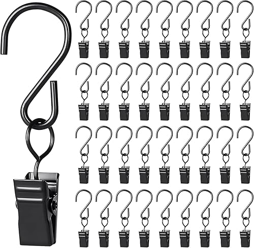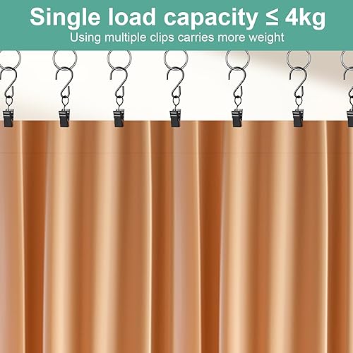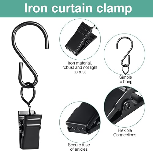 Sheryl&Rain 50 pièces Noir Pinces à Rideau avec Crochet en S, Pince Polyvalente pour Rideaux, Rideaux de Douche Clip Crochets, Clip de lumière de fête, Crochet décoratif, Pince à Serviette