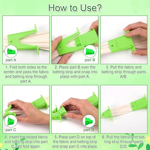 4pcs Appareil pour Fabriquer des Tubes en Tissus, Grande et Petite Appareil à Biais en Plastique pour Fabriquer Facilement un Tapis Jelly Roll(Vert)