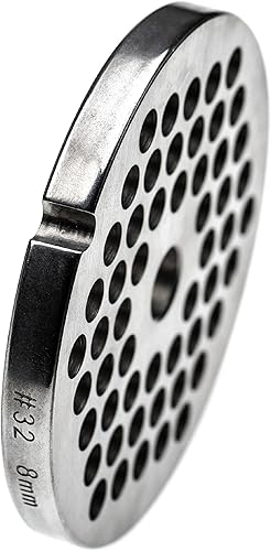vhbw Grille taille 32 compatible avec Porkert hachoir à viande - Diamètre des trous 8mm, trou central 13,4mm, acier inoxydable