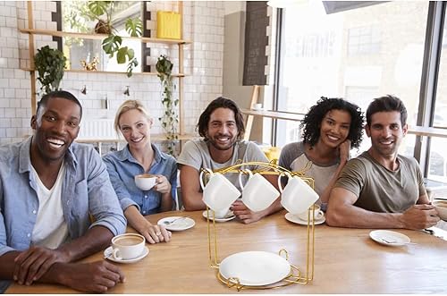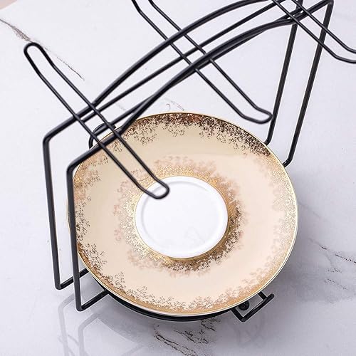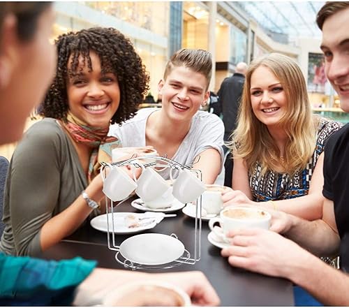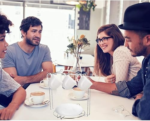 URFEDA Étagère à café en acier inoxydable, porte-6 tasses avec 6 soucoupes, organiseur moderne d'ustensiles de cuisine et cintre pour présentation et rangement de tasses