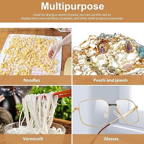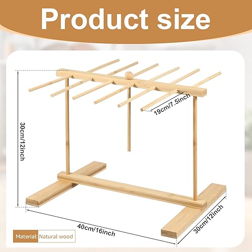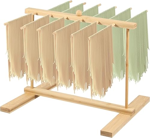 Séchoir à pâtes avec de transfert et 12 barres, support de nouilles en bois amovible pour spaghettis faits maison, arbre de séchage des pâtes fraîches pour sécher les pâtes et cuisiner