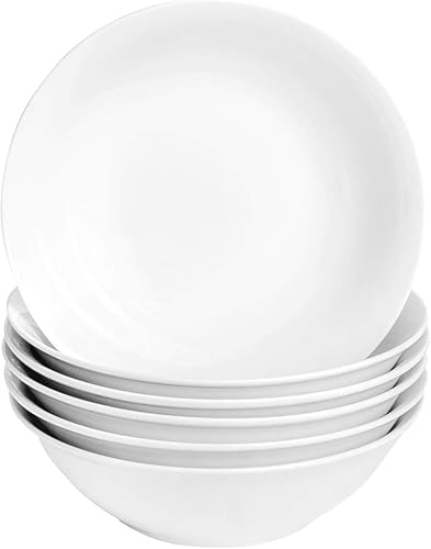 Argon Tableware 6x Bols à Céréales Classiques Blancs 18 cm - Plats à Gruau Ramen Glace en Porcelaine - Passe au Micro-Ondes et au Lave-Vaisselle