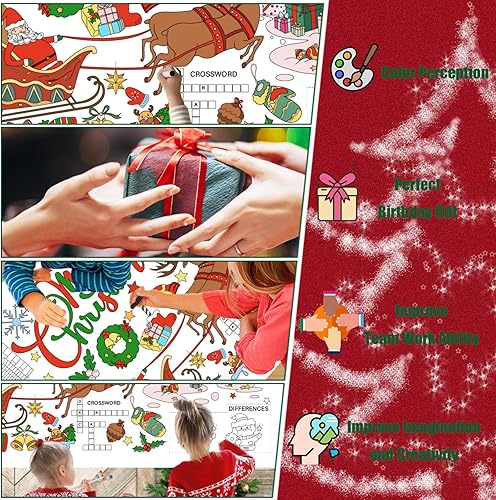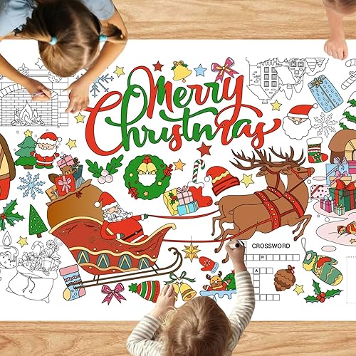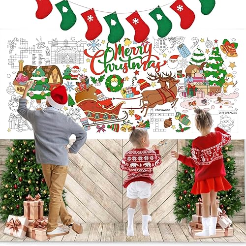 VARACL Poster Géant à Colorier de Noël, Nappe pour Enfants, Bannière Jumbo pour Fête, Activités et Jeux de Coloriage