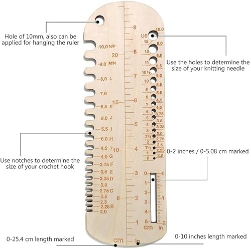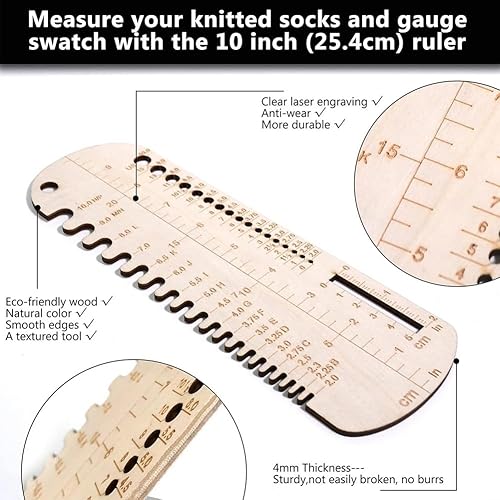Haptufer RèGle à Tricoter pour Chaussettes, Jauge de Taille D'Aiguille à Tricoter en Bois, Outil de Mesure, RèGle PréCise pour Chaussettes, Bloqueur de Tricot pour Bricolage