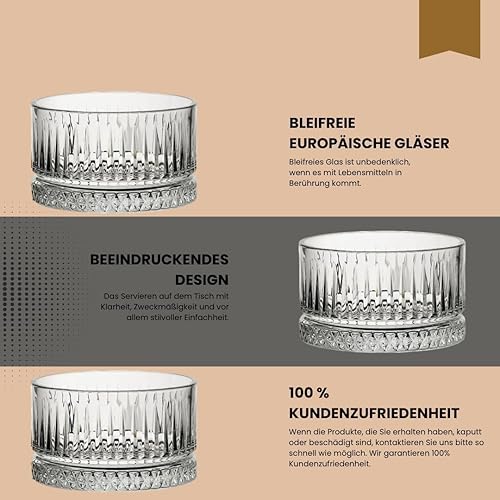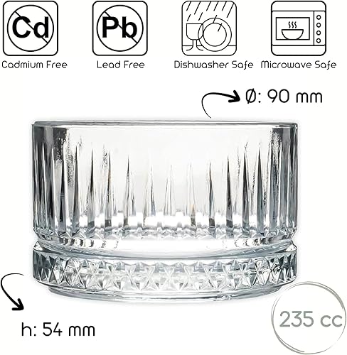 NORDIC SCHILLER Lot de 4 bols à dessert en verre cristal de qualité supérieure - 235 ml - Sans plomb - Bols à dessert, bols à dessert, bols à fruits, bols à sauce, bols à dessert, bols en verre