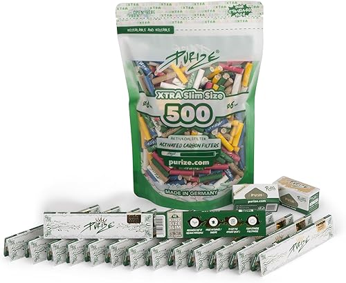 PURIZE Grand kit de recharge – 500 filtres XTRA Slim, 15 feuilles King Size, 2 rouleaux