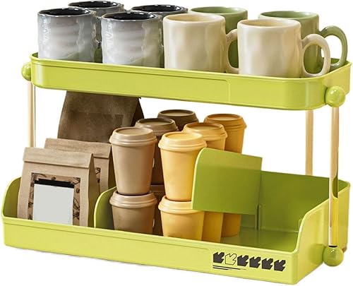 Gvblkq Coffee Mug Shelf, 2-Tier Mug Rack, Tea Cup Holder, Coffee Cup Rack, Kitchen Mug Organizer, Countertop Mug Shelf, Coffee Bar Accessories, Mug Rack For Home, Coffee Station Shelf, Tea
