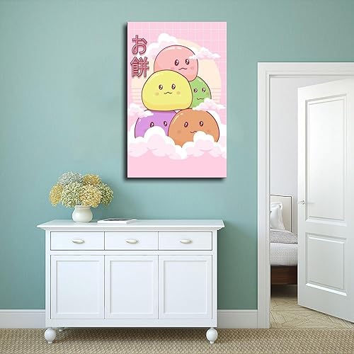 FMSKY Impression sur toile Kawaii Mochi - Nourriture japonaise - Décoration murale pour salon, chambre à coucher - Style sans cadre - 30 x 45 cm