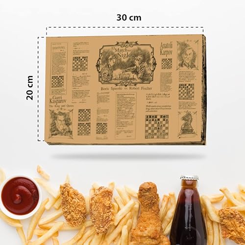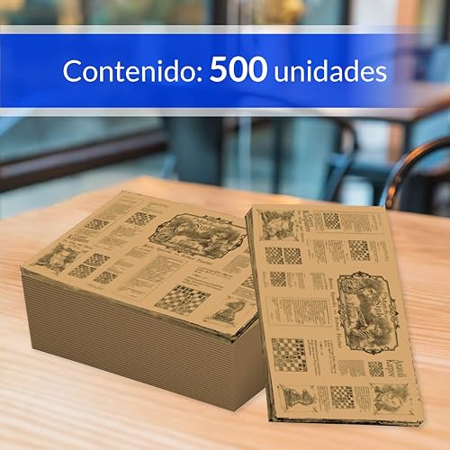Hostelnovo Lot de 500 feuilles de papier anti-graisse pour emballages alimentaires – Design unique – 31 x 28 cm – Spécialement conçu pour les puces de basket et tout récipient – Papier kraft