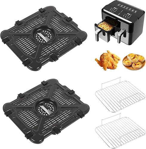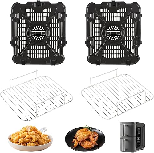 mumisuto Air Fryer Grill Pan for Ninja SL400EU Double Stack XL 2-Basket, 2 Pièces Remplacement Air Friteuse Croustillante Plateau Gril Accessoires Avec 2 Pièces Grille de Cuisson pour Friteuse à Air