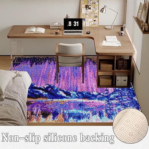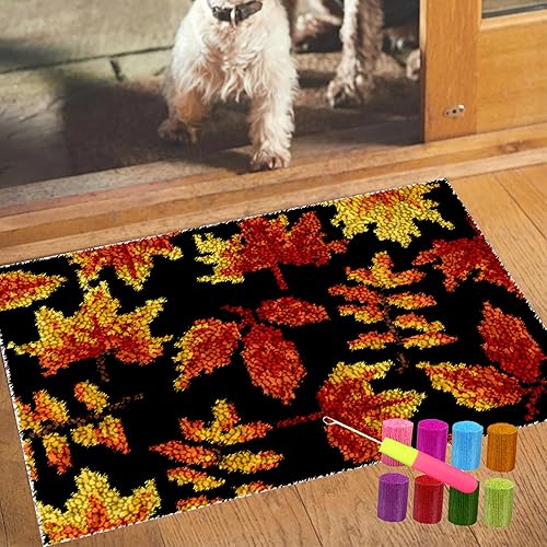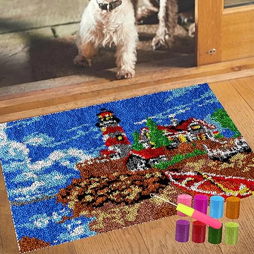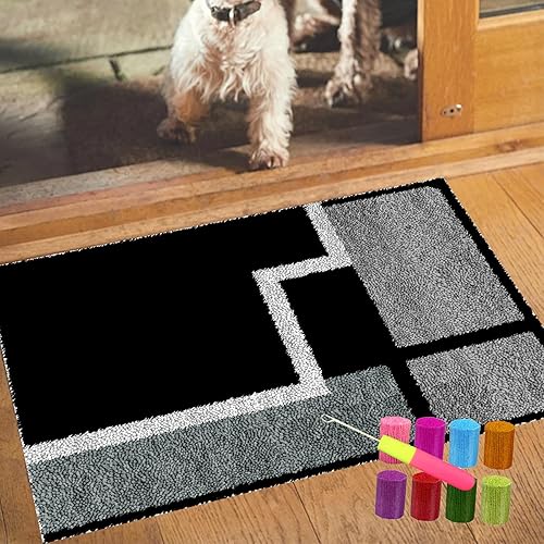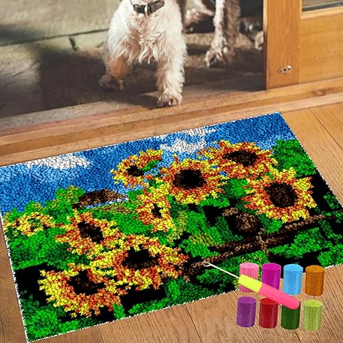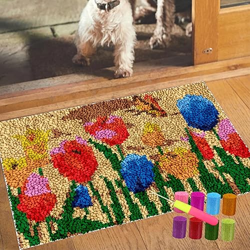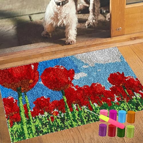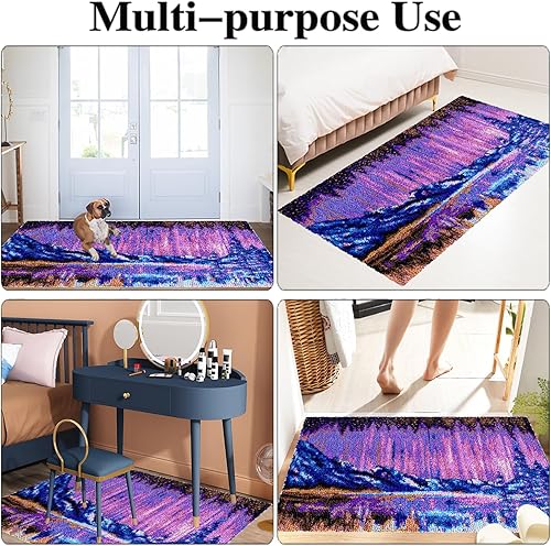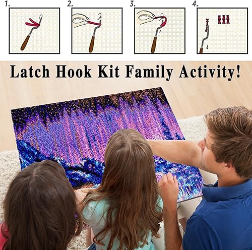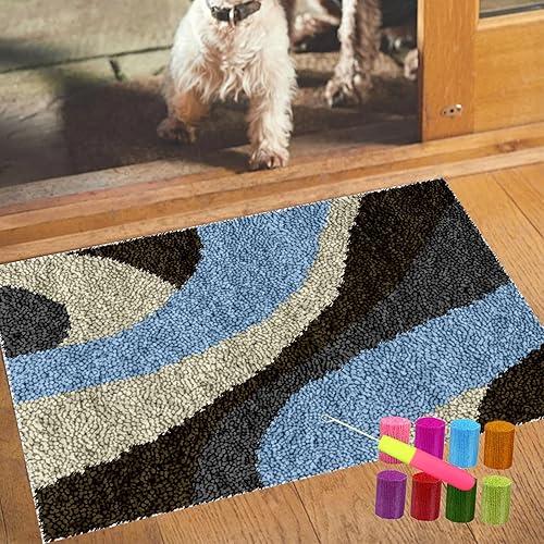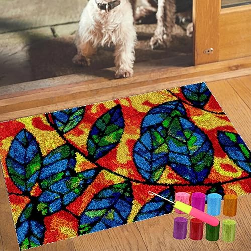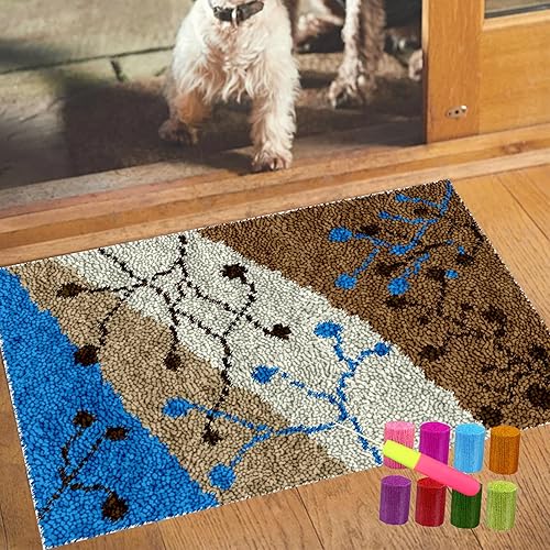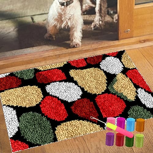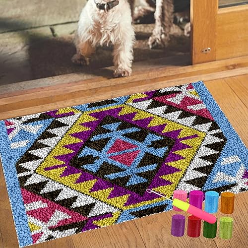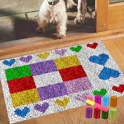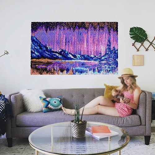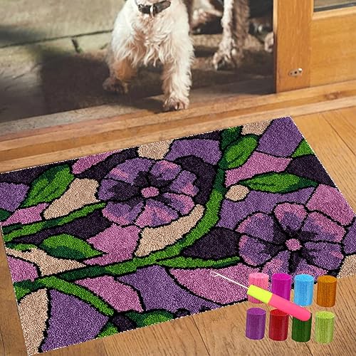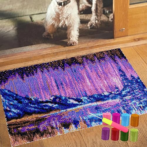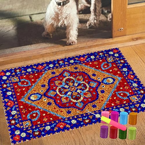 Kit de Tapis de Crochet à Point Noué Coussin au Crochets à Loquet Bricolage, Création de Tapis à Crocher pour Adultes, Modèle de couleur pré-imprimé, Kit de Fabrication de Tapis 55 x 75 cm
